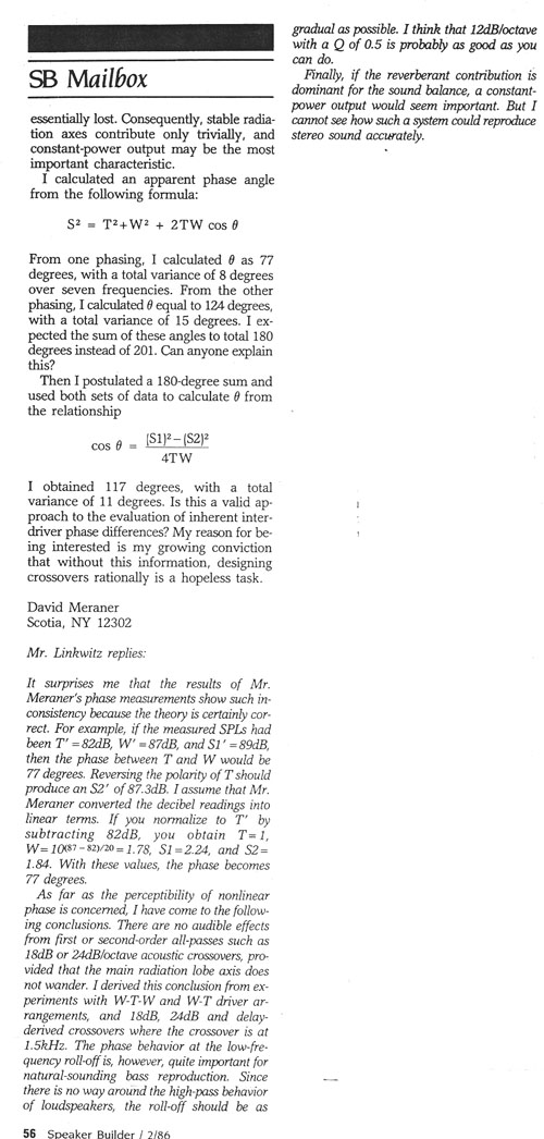 10 - Linkwitz Design Developments, SB 1/84 ----------------------------------------------------------------------------------